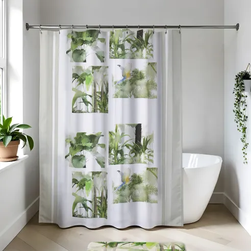 Transforme su baño en un oasis tropical con nuestra cortina de ducha decorada con exuberantes plantas. Este diseño vibrante no solo añade un toque de frescura y naturaleza a su espacio, sino que también es resistente al agua y fácil de limpiar, garantizando durabilidad y estilo. Ideal para quienes buscan un ambiente relajante y acogedor, esta cortina es el complemento perfecto para revitalizar su rutina diaria.
