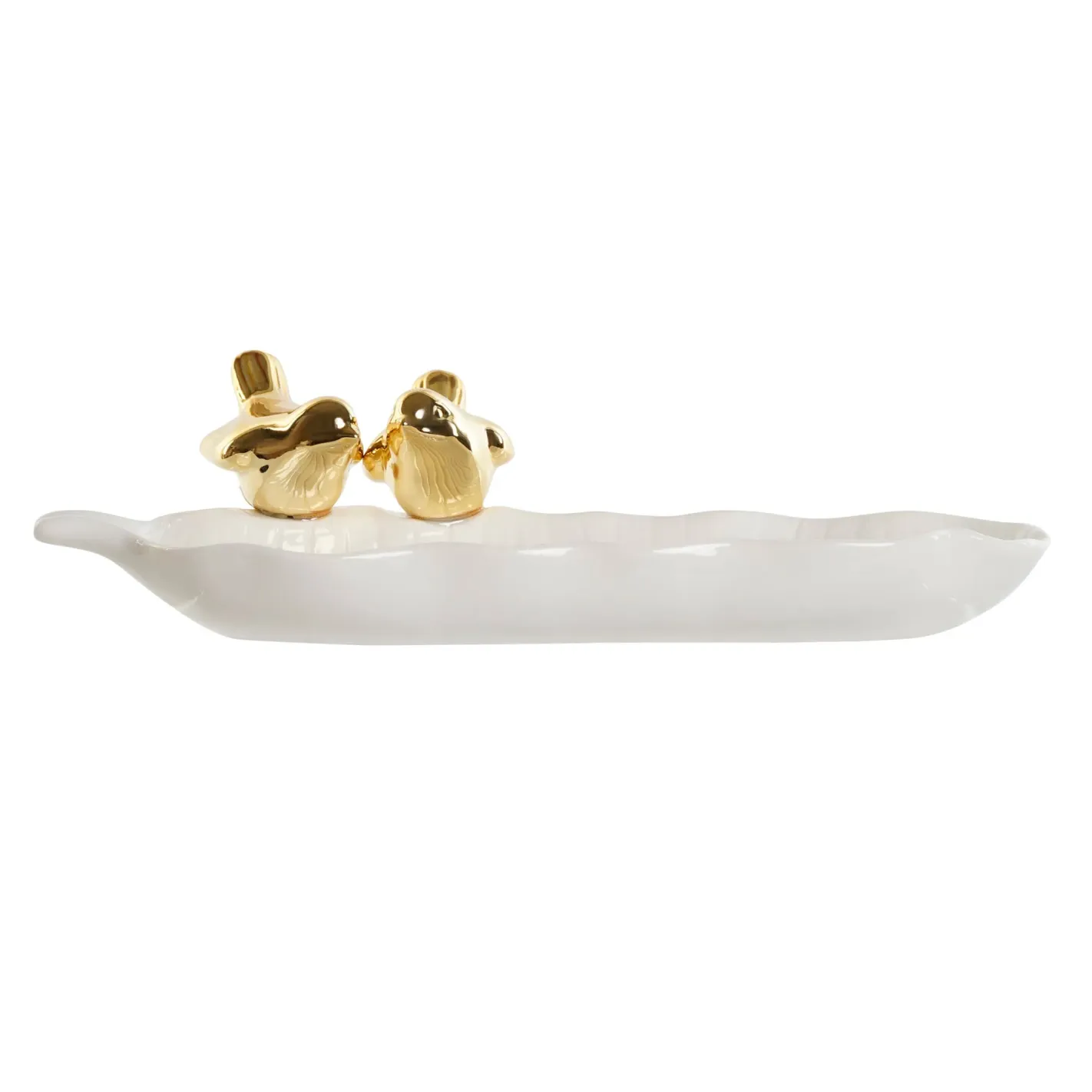 Descubre la elegancia de nuestra bandeja blanca adornada con dos aves doradas, una pieza que combina sofisticación y estilo. Ideal como elemento decorativo,añade un toque de lujo a cualquier ambiente. Su diseño único lo convierte en un regalo perfecto para ocasiones especiales