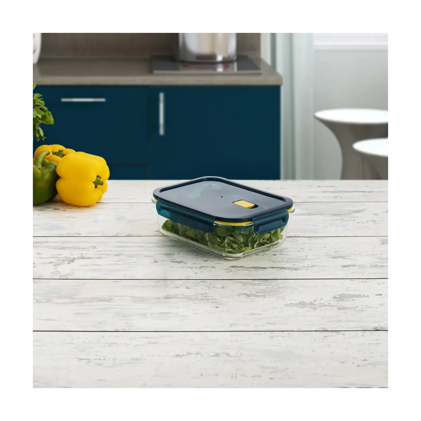 Descubre la versatilidad de nuestro recipiente rectangular de comida en azul y amarillo, diseñado para mantener tus alimentos frescos y organizados. Su cierre hermético garantiza que no haya derrames, mientras que su diseño apilable ahorra espacio en tu cocina. Ideal para llevar almuerzos al trabajo o almacenar sobras, este contenedor es apto para microondas y lavavajillas, lo que lo convierte en una opción práctica y funcional para tu día a día.