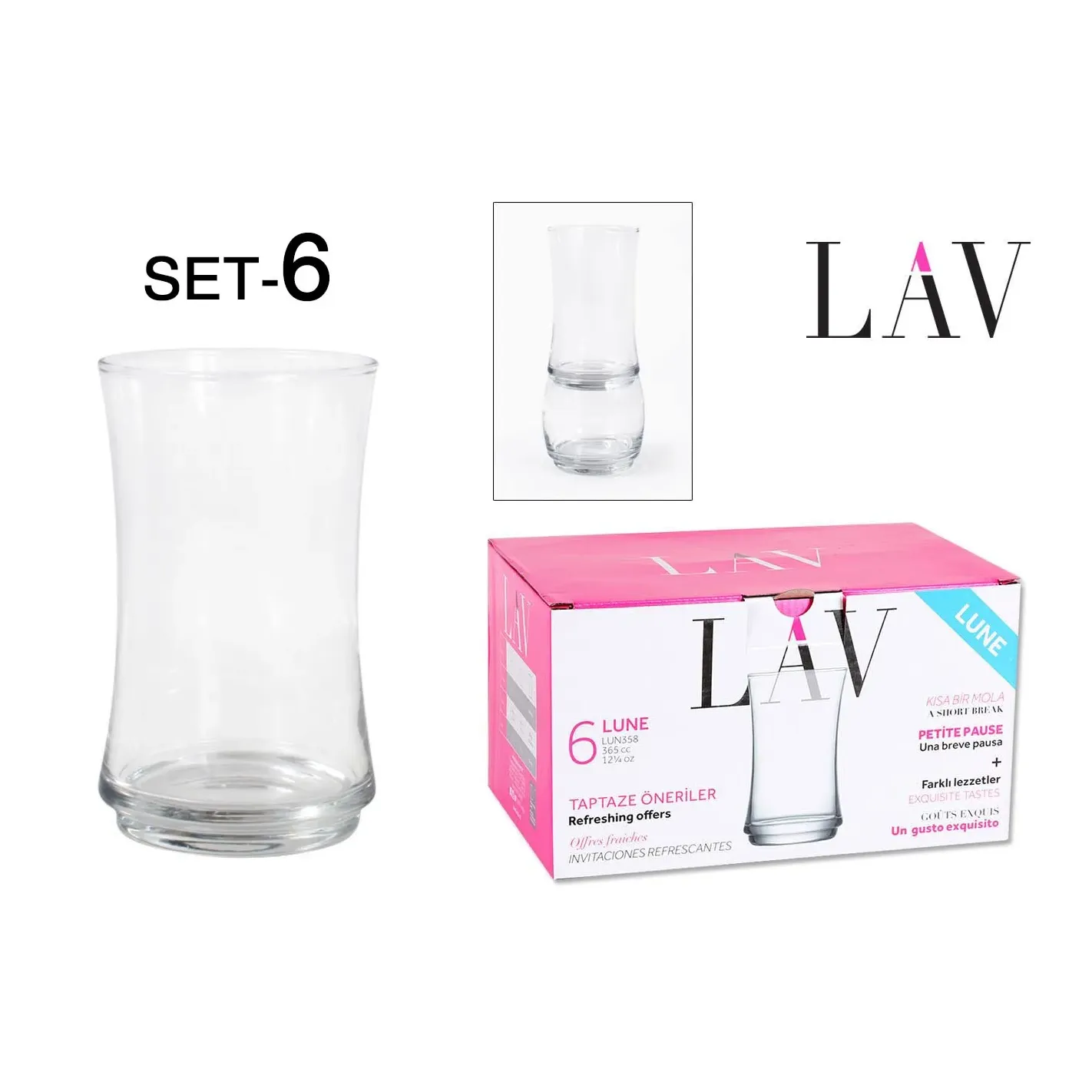 Juego Seis Vasos Cristal 365cc Lune