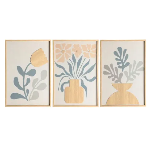 Descubre la elegancia de la naturaleza con nuestro conjunto de tres obras de arte enmarcadas, con borreguillo. Cada pieza presenta delicadas flores en jarrones, aportando un toque de frescura y color a cualquier espacio. Perfectas para embellecer tu hogar u oficina, estas obras no solo decoran, sino que también evocan serenidad y armonía. Dale vida a tus paredes y transforma tu ambiente con esta colección única que combina arte y naturaleza de manera sublime.