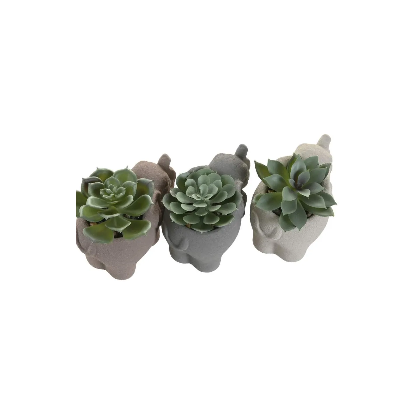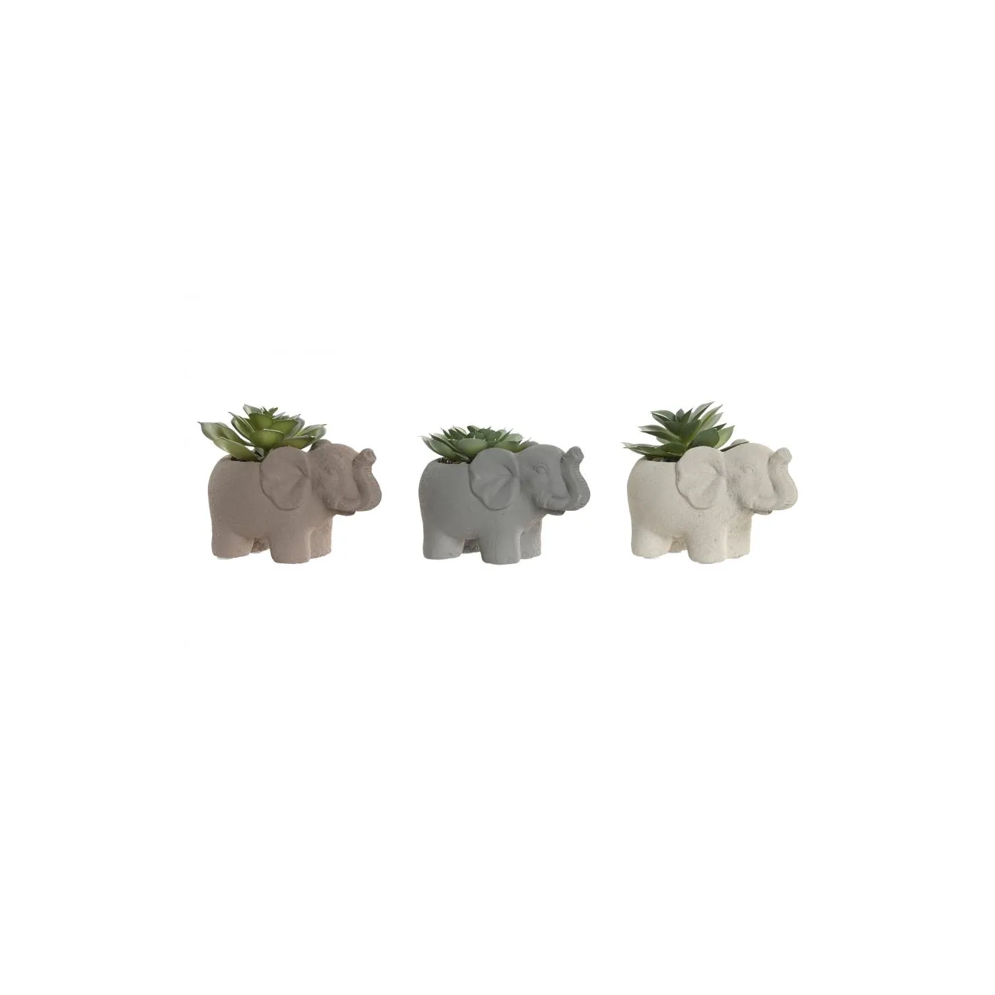 Descubre la elegancia y el encanto de nuestros tres maceteros de elefante, elaborados en figura de resina. Cada uno de estos adorables elefantes alberga suculentas vibrantes, aportando un toque de frescura y vida a cualquier espacio. Perfectos para decorar tu hogar u oficina, estos maceteros no solo son una opción estética, sino también una excelente manera de introducir la naturaleza en tu entorno. Añade un toque de originalidad y estilo a tu decoración con esta encantadora colección.