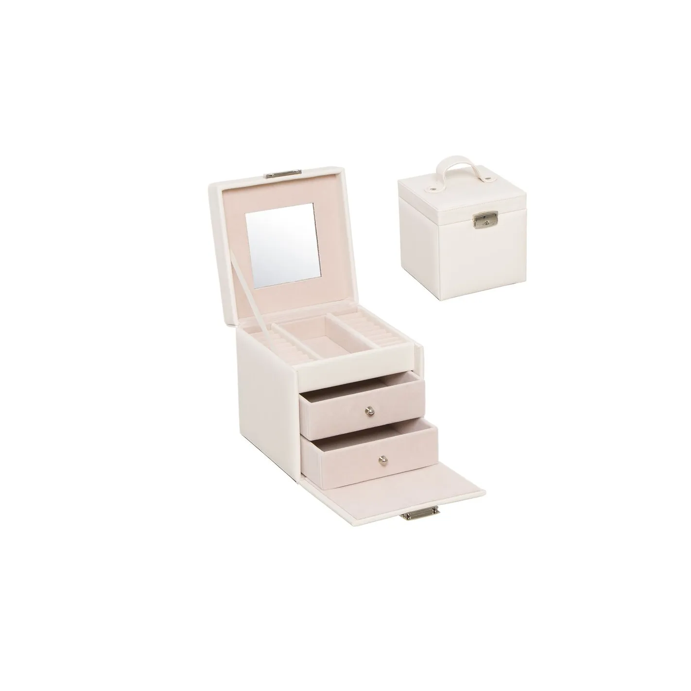 Descubre la elegancia y funcionalidad de nuestra caja de joyería blanca, diseñada con dos compartimentos para mantener tus accesorios organizados y al alcance de la mano. Su acabado pulido no solo aporta un toque de sofisticación a tu espacio, sino que también protege tus joyas del polvo y los enredos. Ideal para cualquier amante de la joyería, esta caja es el complemento perfecto para mantener tus tesoros en perfecto estado.