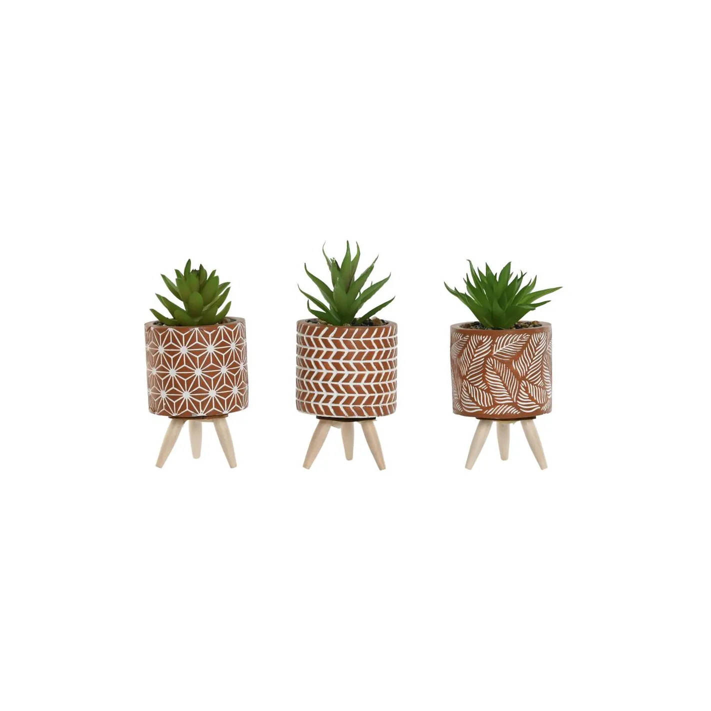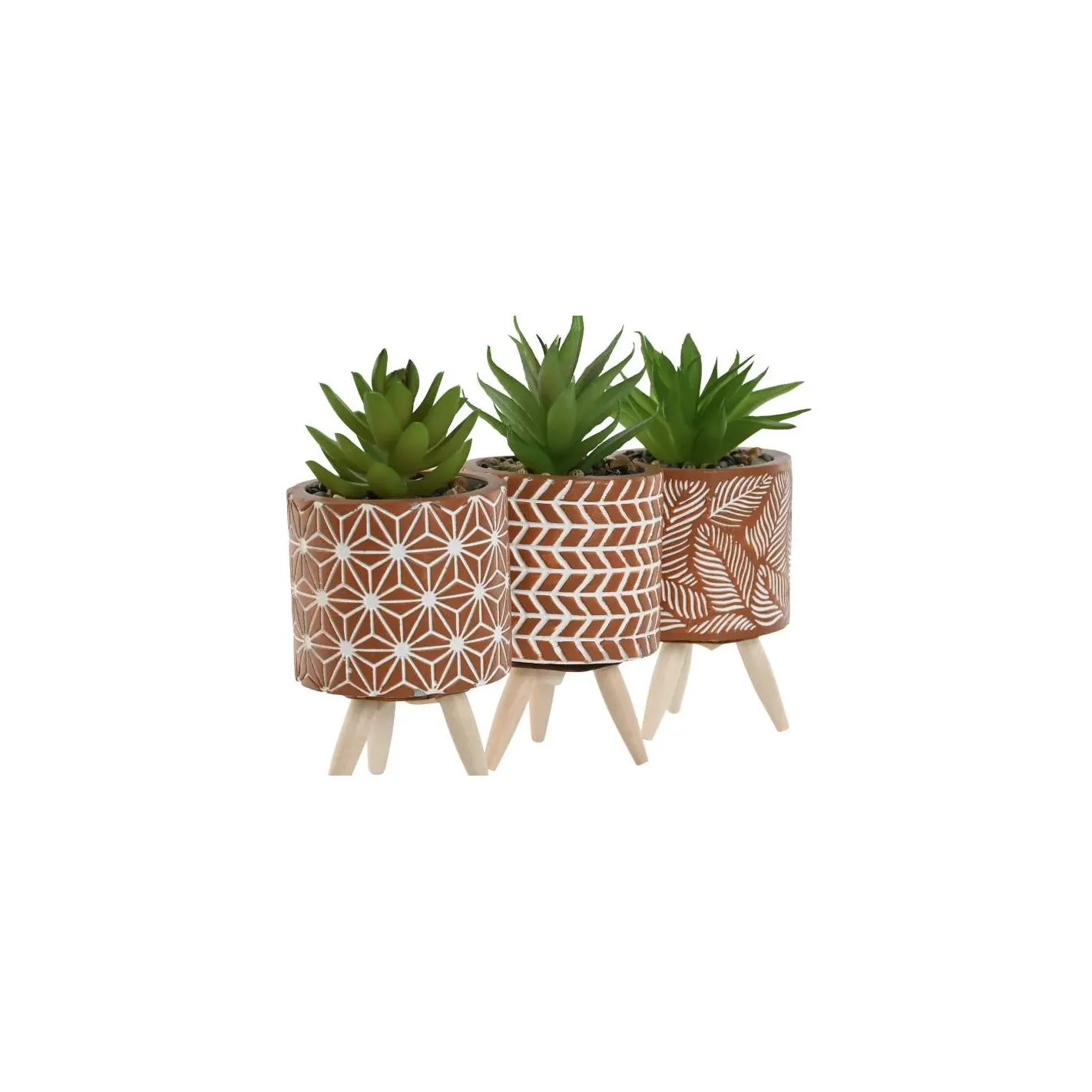 Descubre la elegancia natural con nuestros tres pequeños maceteros con suculentas, perfectos para añadir un toque de frescura a cualquier espacio. Cada planta se presenta en un soporte de madera que realza su belleza y proporciona estabilidad, convirtiéndolos en una opción ideal para escritorios, estanterías o mesas. Su bajo mantenimiento y resistencia hacen de estas suculentas una elección perfecta para quienes buscan un ambiente verde sin complicaciones. Dale vida a tu hogar u oficina con esta encantadora colección que combina estilo y funcionalidad.