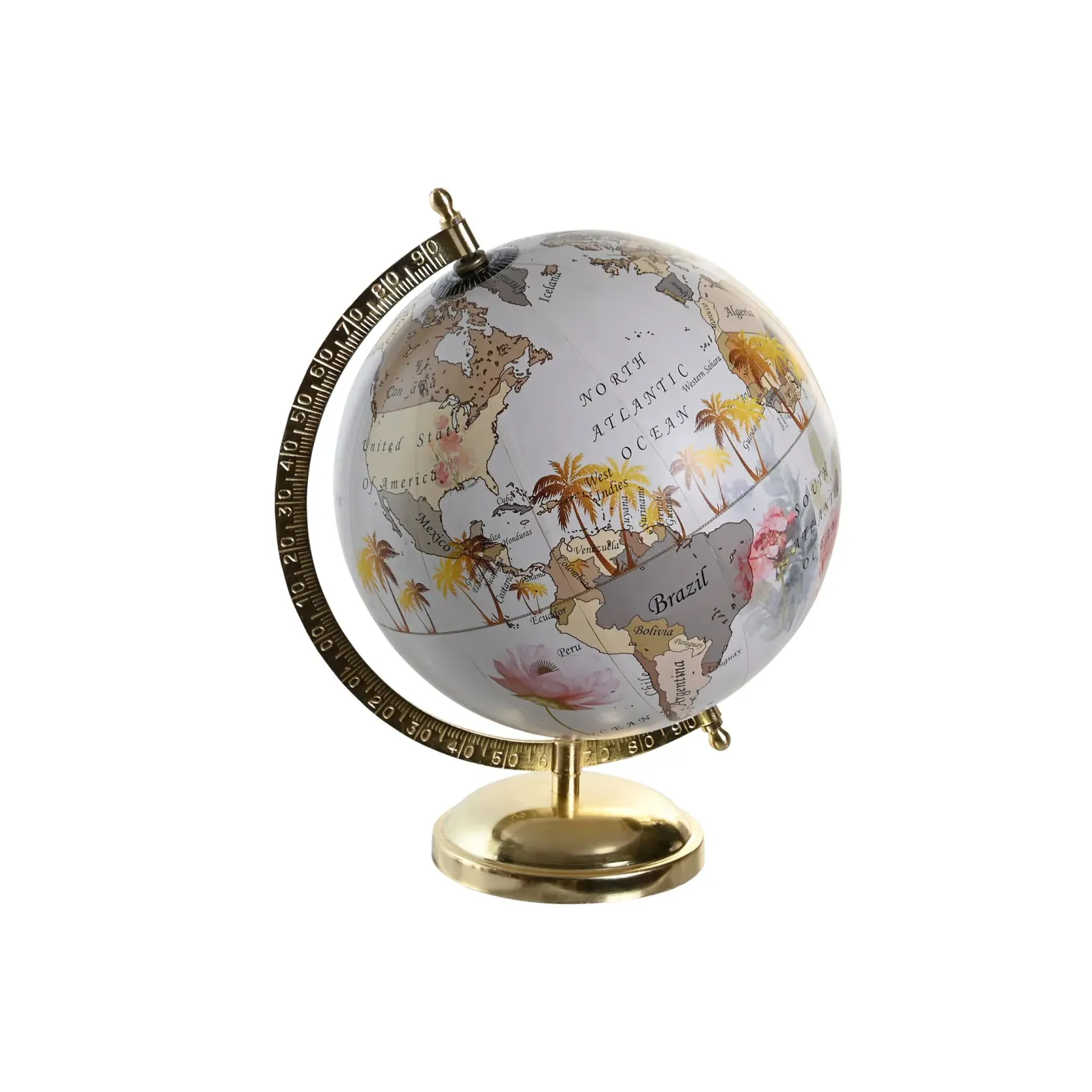 Descubre el encanto de nuestro globo terráqueo con soporte dorado y diseño tropical, una pieza decorativa que combina elegancia y estilo. Ideal para añadir un toque exótico a cualquier espacio, este globo no solo es un elemento decorativo, sino también una herramienta educativa que inspira la curiosidad por el mundo. Su base dorada aporta un aire de sofisticación, convirtiéndolo en el regalo perfecto para amantes de los viajes y la geografía.
