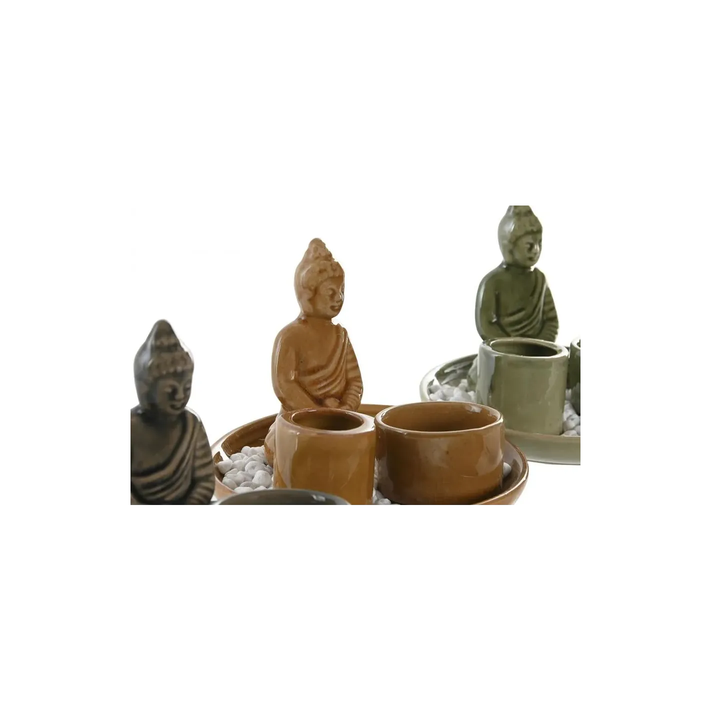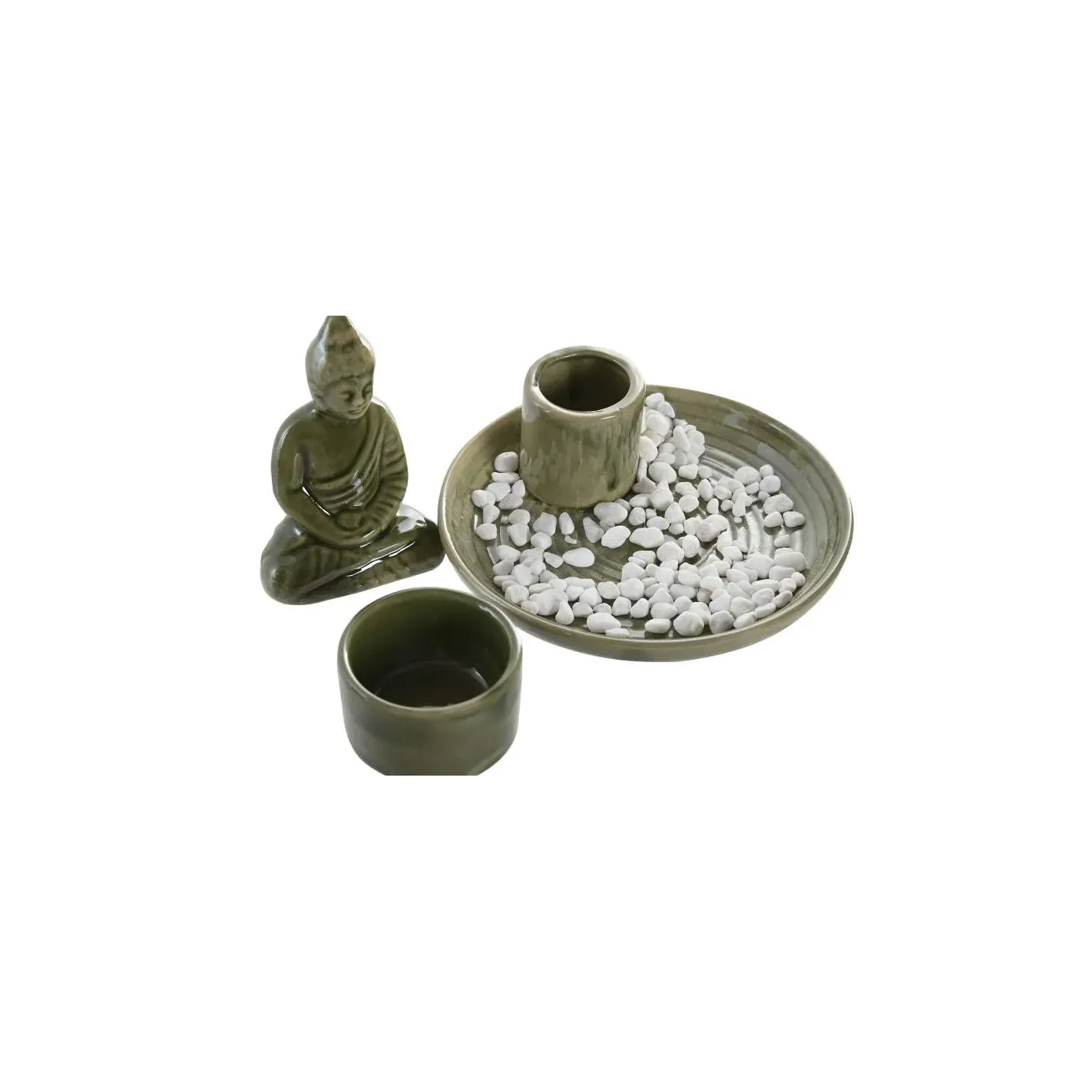 Descubre la serenidad en tu hogar con esta exquisita estatua de Buda de cerámica, acompañada de un elegante cuenco lleno de piedras blancas. Este conjunto no solo embellece tu espacio, sino que también sirve como soporte para incienso, creando un ambiente de paz y meditación. La combinación de la figura de Buda y las piedras aporta un toque de armonía y equilibrio, ideal para cualquier rincón de tu hogar o lugar de trabajo. Añade un elemento de tranquilidad a tu vida diaria y transforma tu entorno en un refugio de calma.