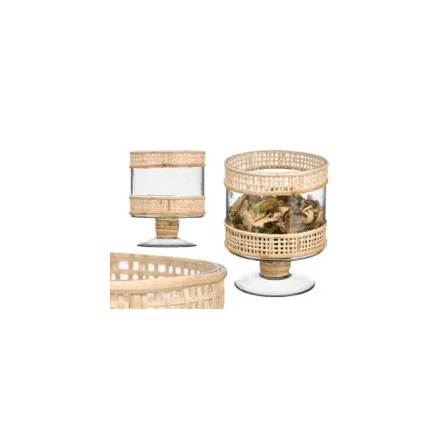 Descubre la elegancia del Jarrón Copa, una pieza única que combina la transparencia del vidrio con la calidez del mimbre. Este jarrón no solo es un contenedor, sino una obra de arte que realza cualquier espacio. Ideal para exhibir flores frescas o como un elemento decorativo por sí solo, su diseño versátil se adapta a cualquier estilo de decoración. Añade un toque de sofisticación a tu hogar con este encantador jarrón que seguramente capturará la atención de tus invitados.