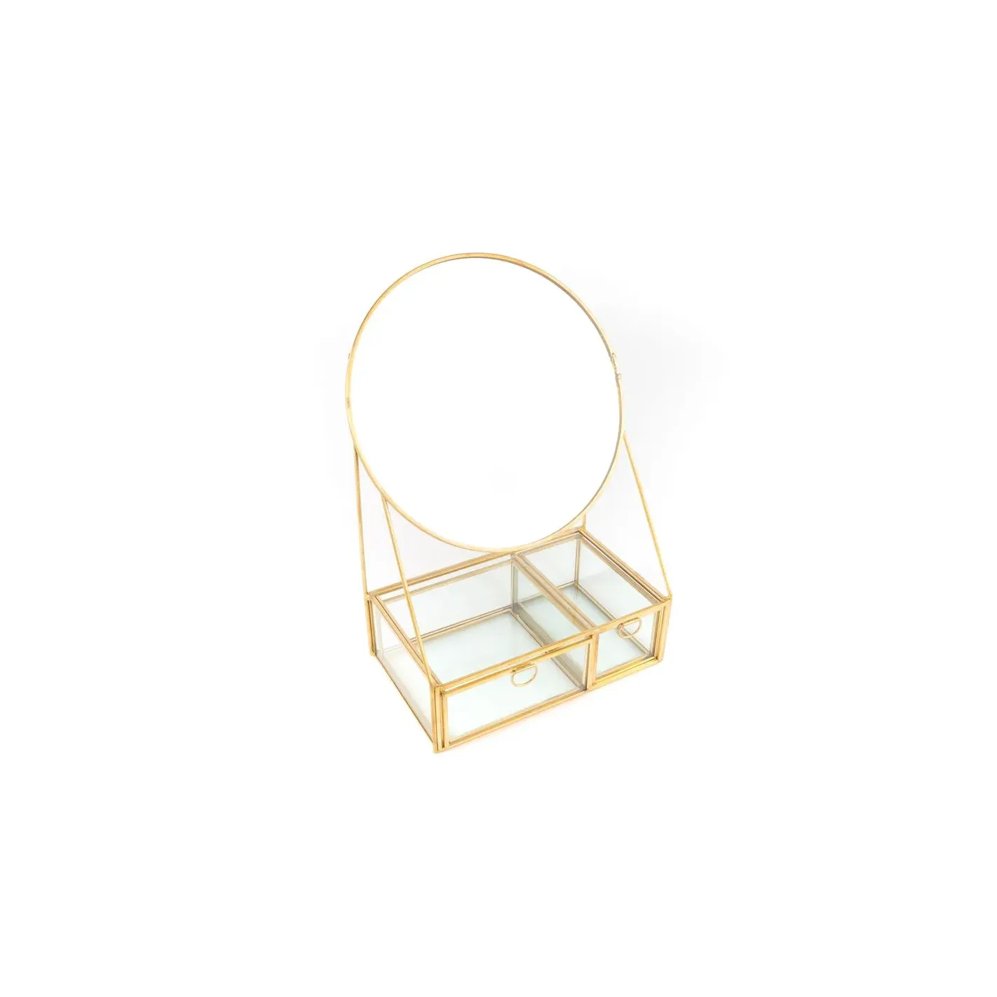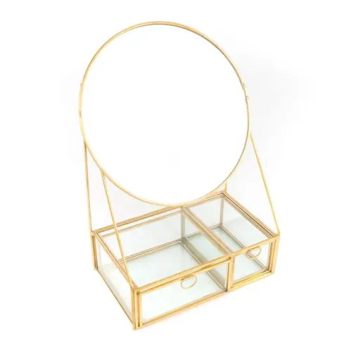 Descubre la elegancia atemporal del espejo dorado Joyero, diseñado para realzar cualquier espacio con su sofisticado acabado y su base de vidrio. Este espejo no solo es una pieza decorativa, sino también una herramienta funcional que añade luminosidad y amplitud a tu hogar. Su diseño refinado lo convierte en el complemento perfecto para tu tocador o sala de estar, brindando un toque de lujo y estilo.