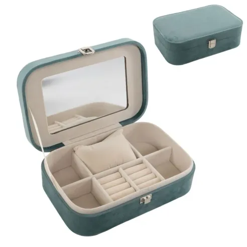 Descubre la elegancia y funcionalidad del Joyero, un pequeño estuche diseñado para mantener tus joyas organizadas y al alcance de la mano. Con un espejo integrado y compartimentos estratégicamente dispuestos, este joyero no solo es ideal para almacenar collares, pulseras y anillos, sino que también te permite prepararte con facilidad y estilo. Su diseño compacto lo hace perfecto para viajes o para lucir en tu tocador, convirtiéndolo en un accesorio imprescindible para cualquier amante de la joyería.
