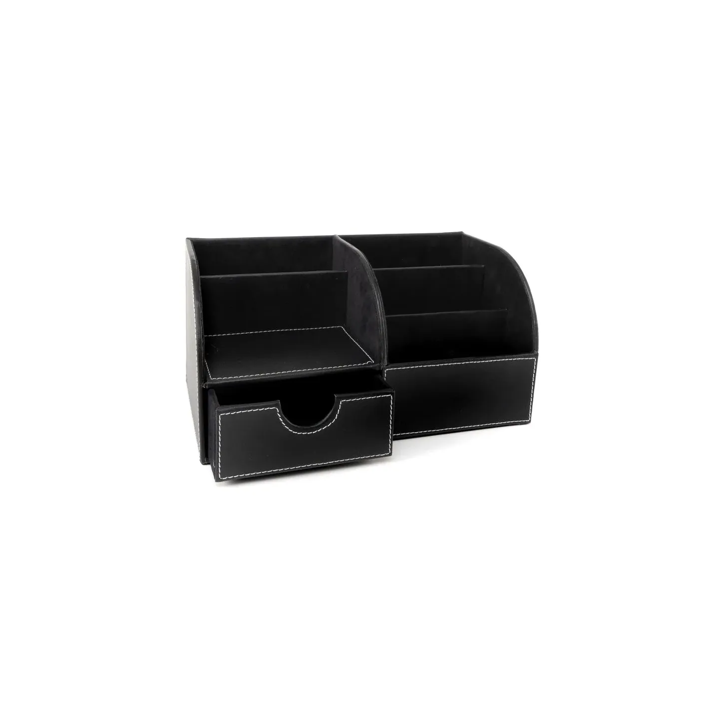 Organice su espacio de trabajo con este elegante organizador de escritorio de cuero negro, diseñado con dos compartimentos para mantener sus utensilios de oficina al alcance de la mano. Su acabado sofisticado no solo aporta un toque de distinción a su escritorio, sino que también garantiza durabilidad y resistencia al desgaste diario. Ideal para profesionales que valoran la funcionalidad y el estilo, este organizador es la solución perfecta para mantener su entorno de trabajo ordenado y eficiente.