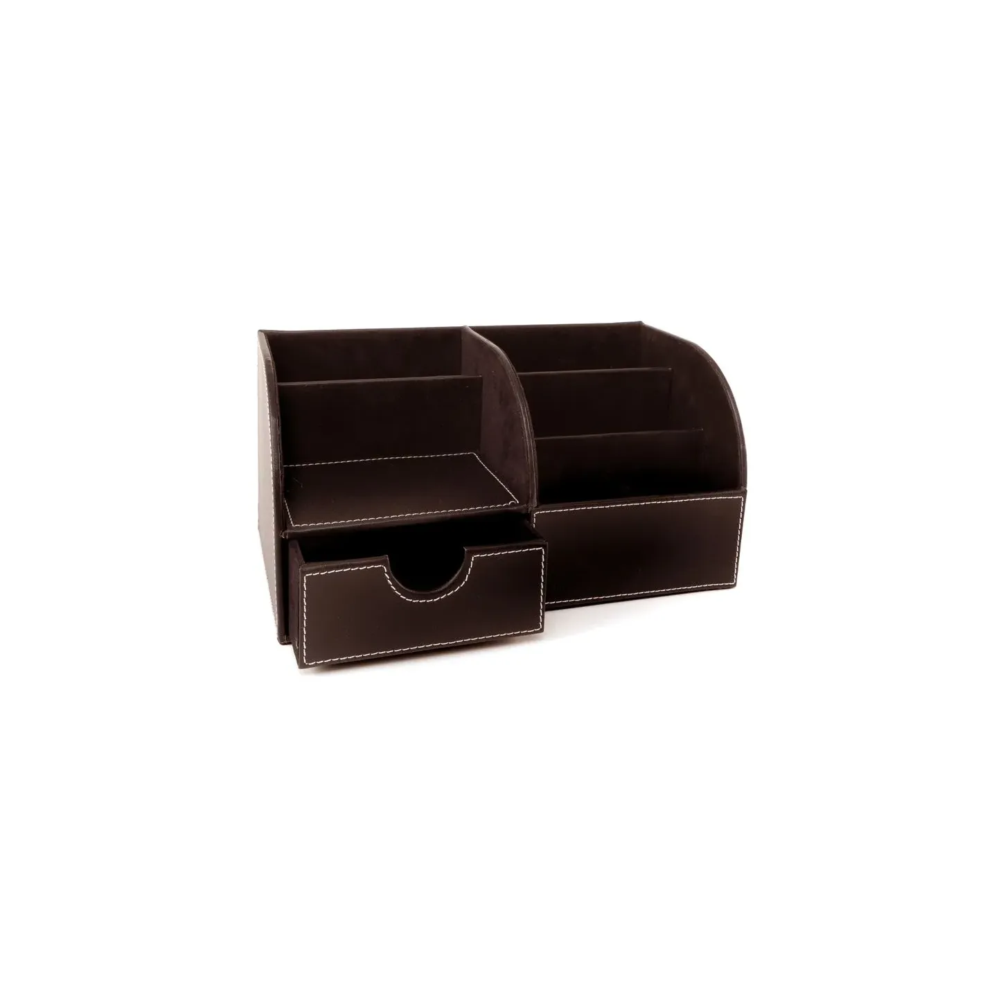 Organice su espacio de trabajo con este elegante organizador de escritorio de cuero marron, diseñado con dos compartimentos para mantener sus utensilios de oficina al alcance de la mano. Su acabado sofisticado no solo aporta un toque de distinción a su escritorio, sino que también garantiza durabilidad y resistencia al desgaste diario. Ideal para profesionales que valoran la funcionalidad y el estilo, este organizador es la solución perfecta para mantener su entorno de trabajo ordenado y eficiente.