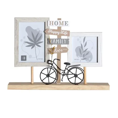 Descubre la elegancia y el estilo de nuestros portafotos, que presentan dos marcos artísticamente diseñados con imágenes de una bicicleta y una planta. Estos portafotos no solo son una forma encantadora de exhibir tus recuerdos más preciados, sino que también añaden un toque de frescura y naturaleza a cualquier espacio. Perfectos para el hogar o la oficina, son ideales para quienes buscan una decoración que inspire y embellezca su entorno.