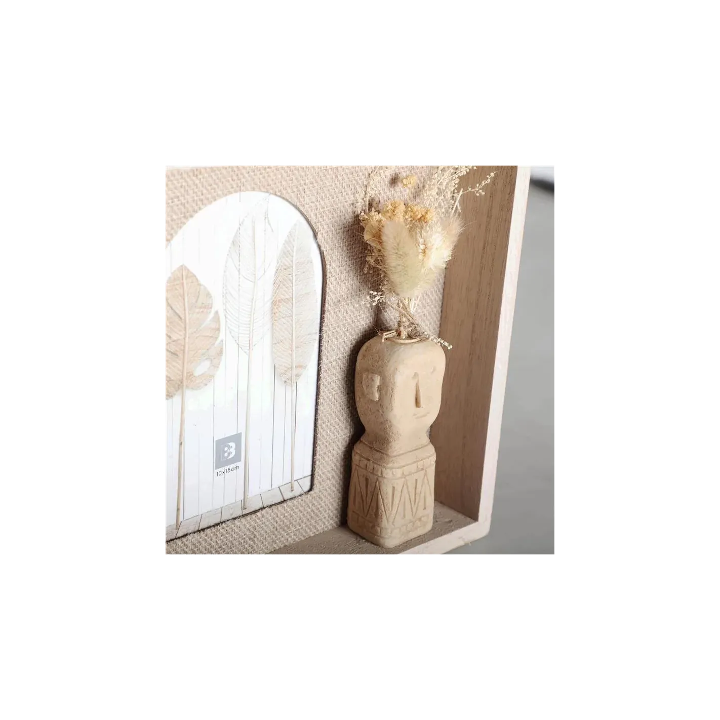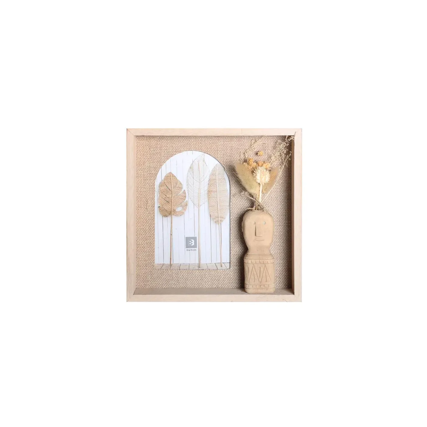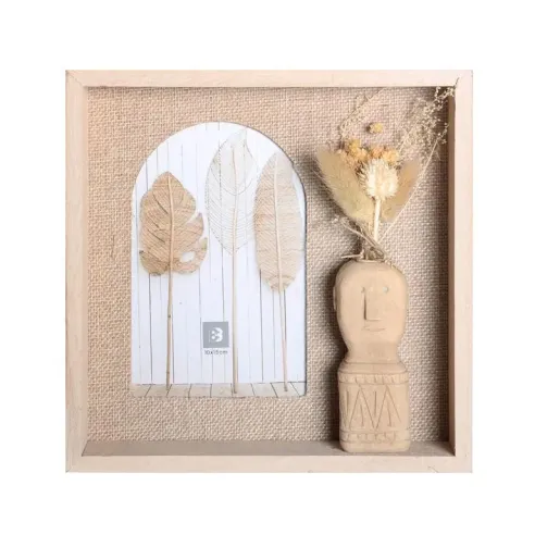 Descubre la elegancia natural de nuestro marco de fotos con un diseño de madera que realza cualquier espacio. Este marco no solo es perfecto para exhibir tus recuerdos más preciados, sino que también incluye un jarrón integrado que añade un toque fresco y orgánico con hojas decorativas. Ideal para hogares modernos y minimalistas, este marco es una excelente opción para personalizar tu decoración y hacer que cada rincón cuente.