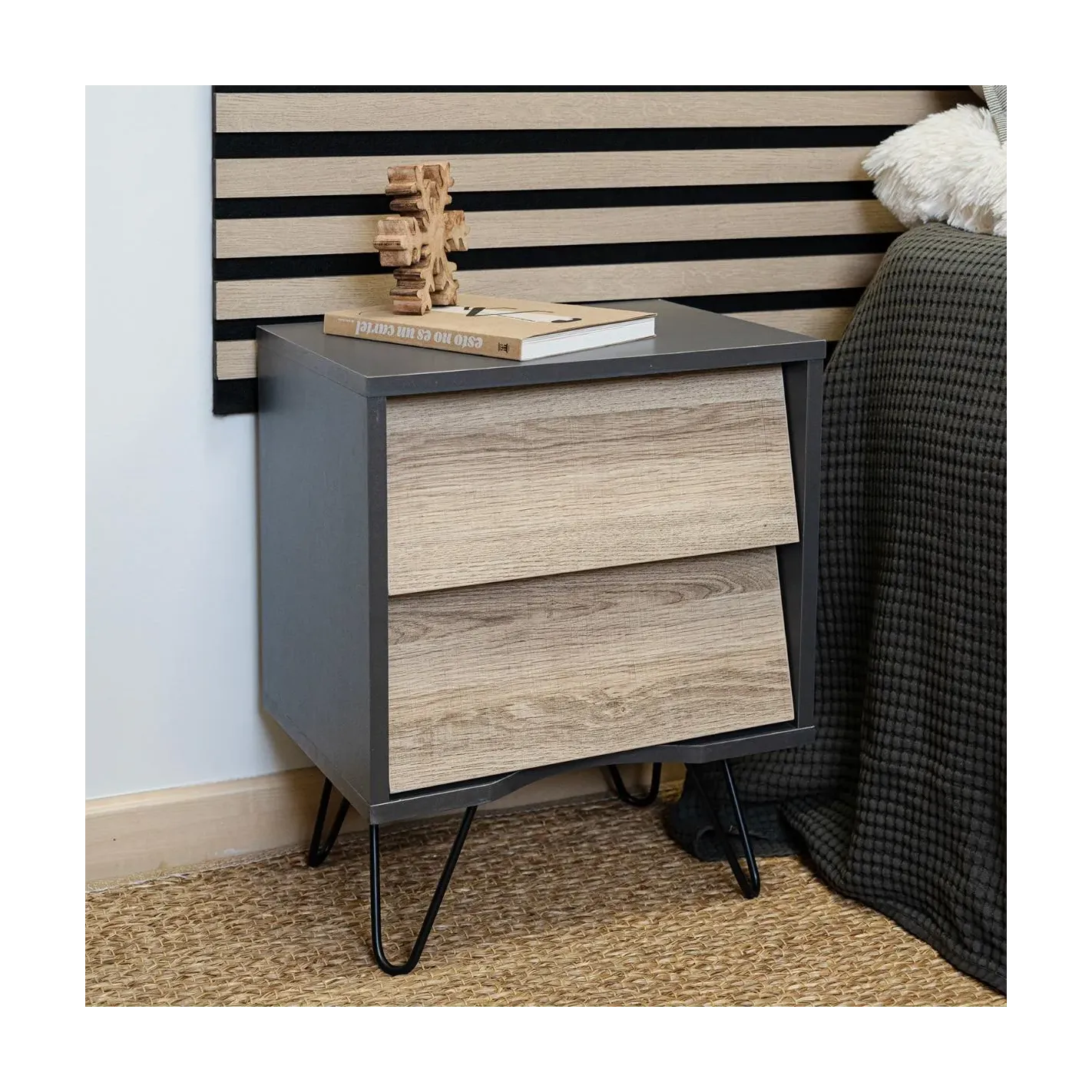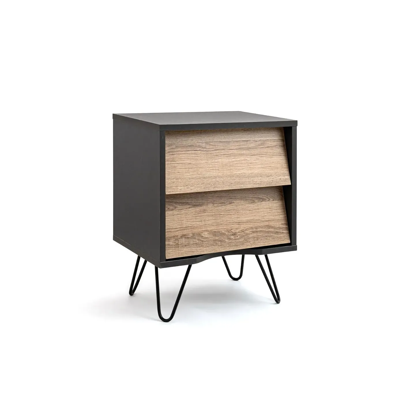 Descubre la elegancia y funcionalidad del mesita de noche negra con detalles en madera. Con dos amplios cajones, ofrece un espacio de almacenamiento ideal para mantener tus objetos personales organizados y al alcance de la mano. Su diseño contemporáneo combina a la perfección con cualquier decoración, aportando un toque de sofisticación a tu dormitorio. Ideal para quienes buscan estilo y practicidad en un solo mueble.